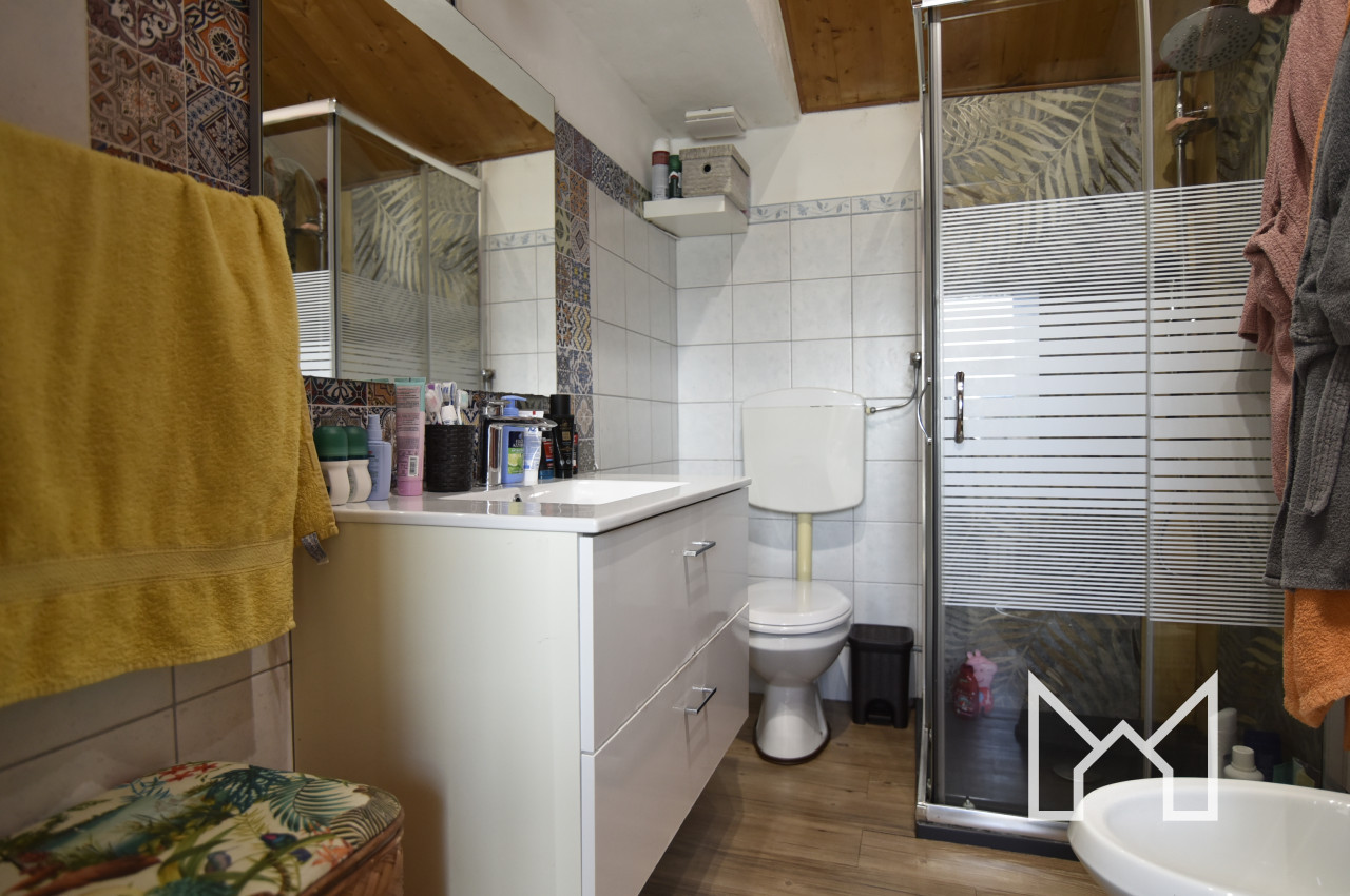 Una volta all'interno troviamo al piano terra un ampio soggiorno separato dalla cucina, un bagno finestrato attrezzato con doccia e un pratico ripostiglio.
