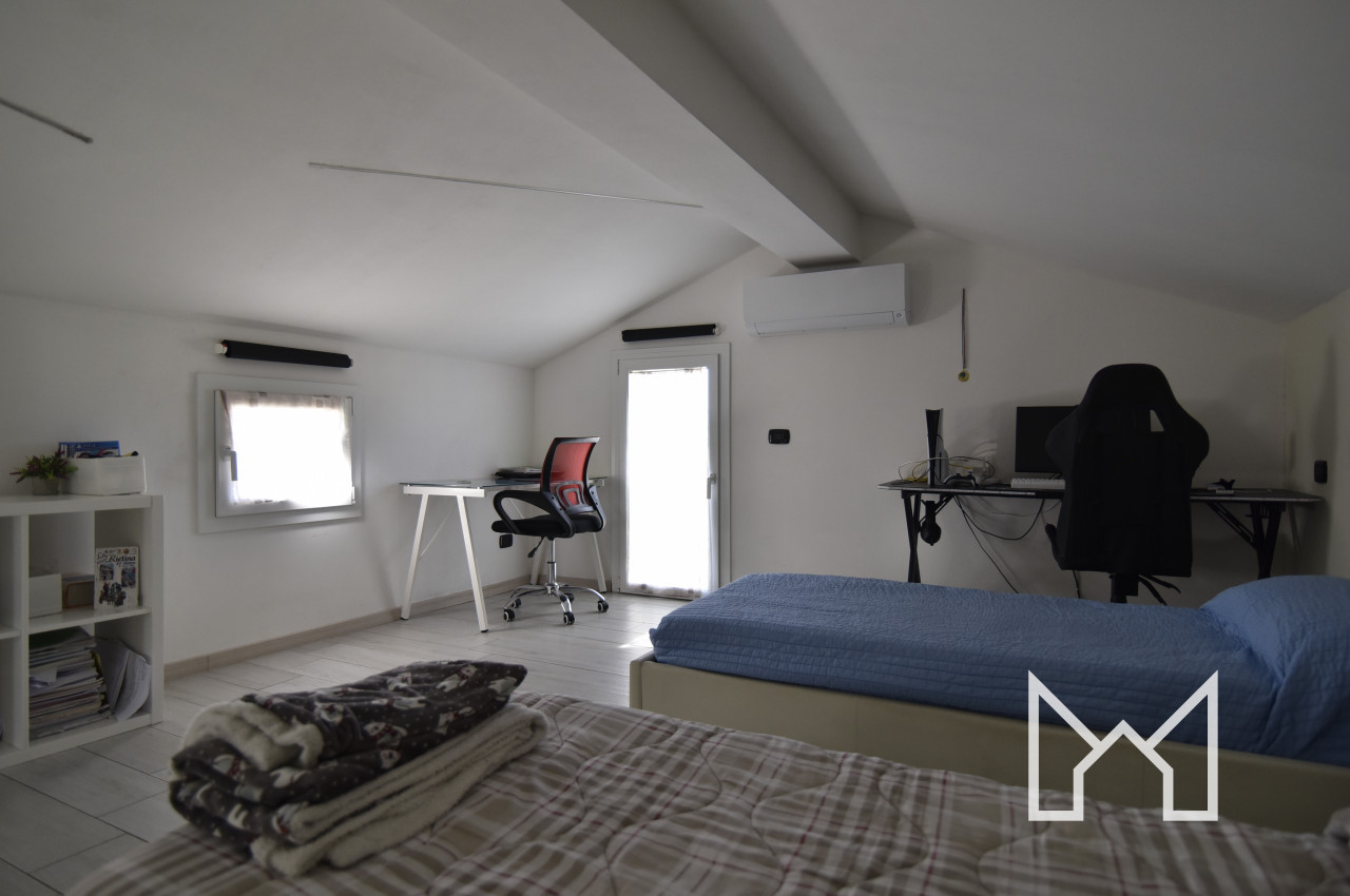 Salendo le scale accediamo al reparto notte composto da cameretta/studio, camera matrimoniale, bagno cieco con doccia e una seconda camera matrimoniale con cabina armadio.