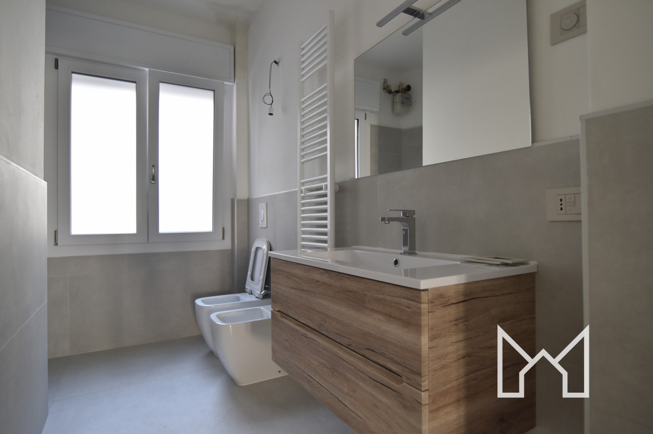 Una volta all’interno troviamo la zona giorno in un unico ambiente, servita da un bagno finestrato attrezzato con doccia e pratico ripostiglio ideale per ricreare un angolo lavanderia.