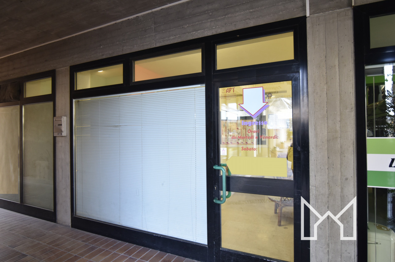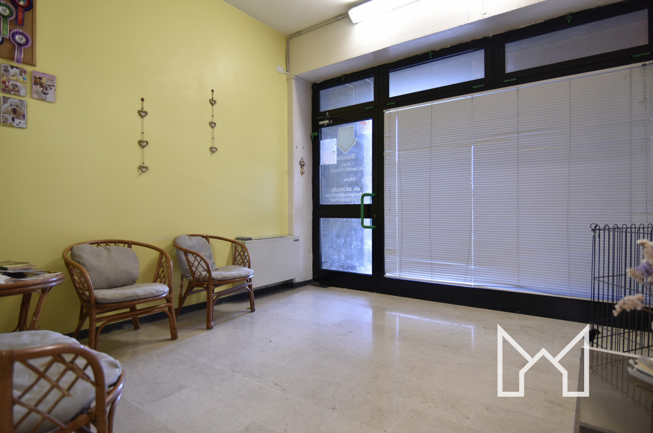 Il locale comprende uno spazio totale di 121 mq distribuito al piano terra con ingresso vetrinato, stanza, antibagno e bagno di servizio e al piano interrato con magazzino accessibile sia dall'interno che dal vano condominiale.